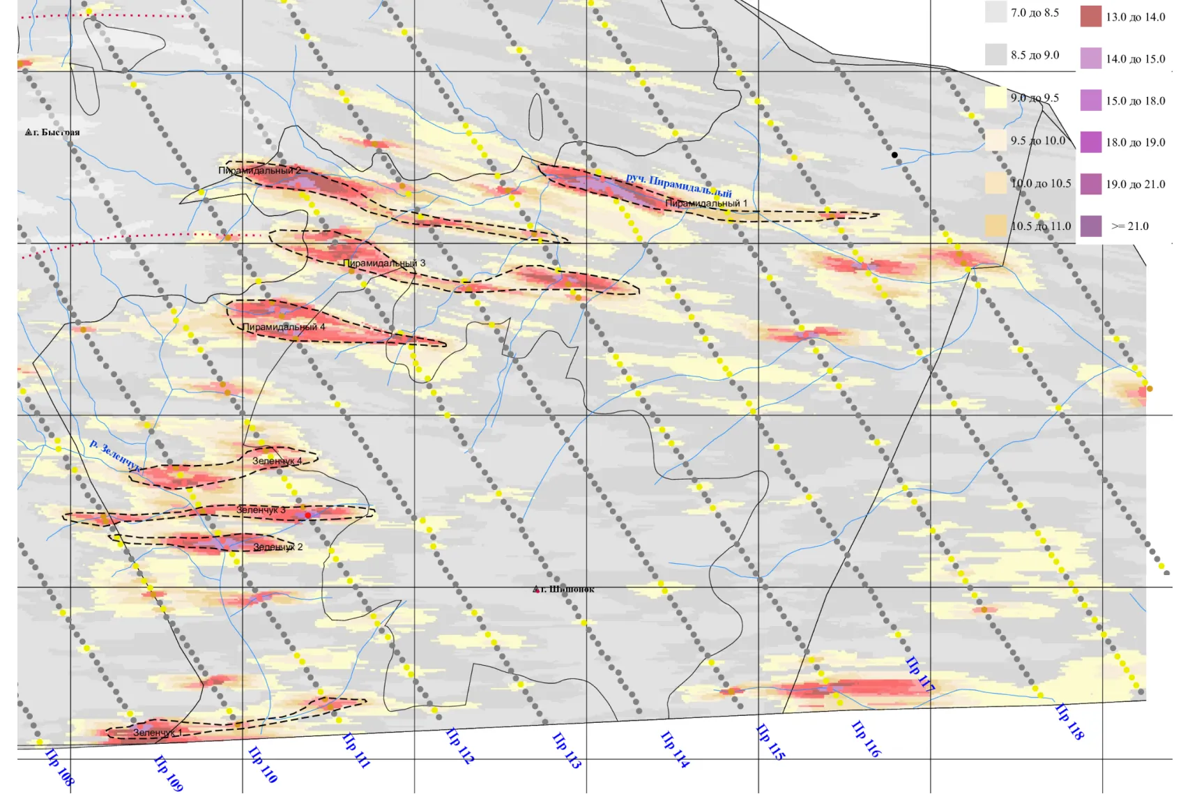 На Кумроче мы тоже искали золото по ореолам рассеяния. Но не шлихами — этот метод применяется, когда площадь поисков обширна и о ней мало что известно. Мы отбирали пробы грунта, анализировали их и строили по результатам карты аномалий. Аномалии как раз и подсказывают, где может скрываться месторождение,