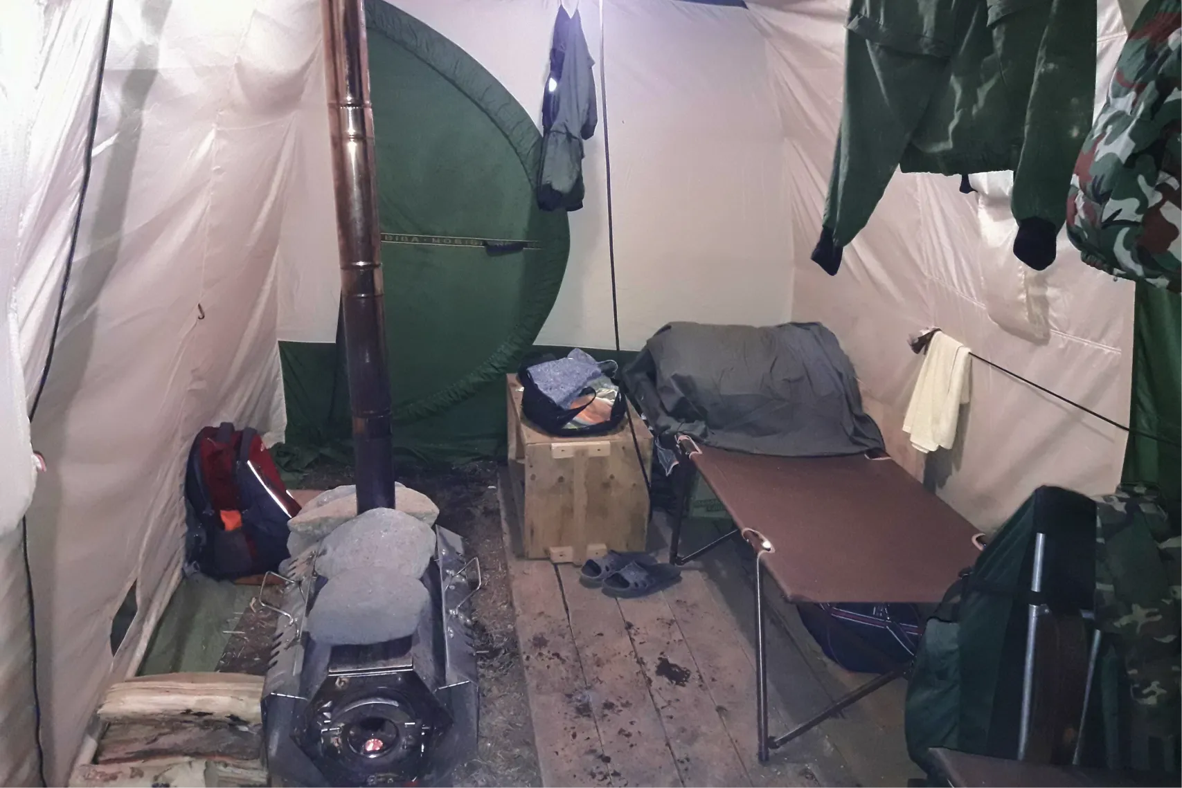 Прилетев на место, команда первым делом разгружает вертолёт и обустраивает лагерь. Это общая задача: кто-то ставит палатки, кто-то начинает готовить еду, кто-то проверяет оборудование. На это уходит один-два дня — главное, чтобы уже в первую ночь было где спать и чем поужинать.