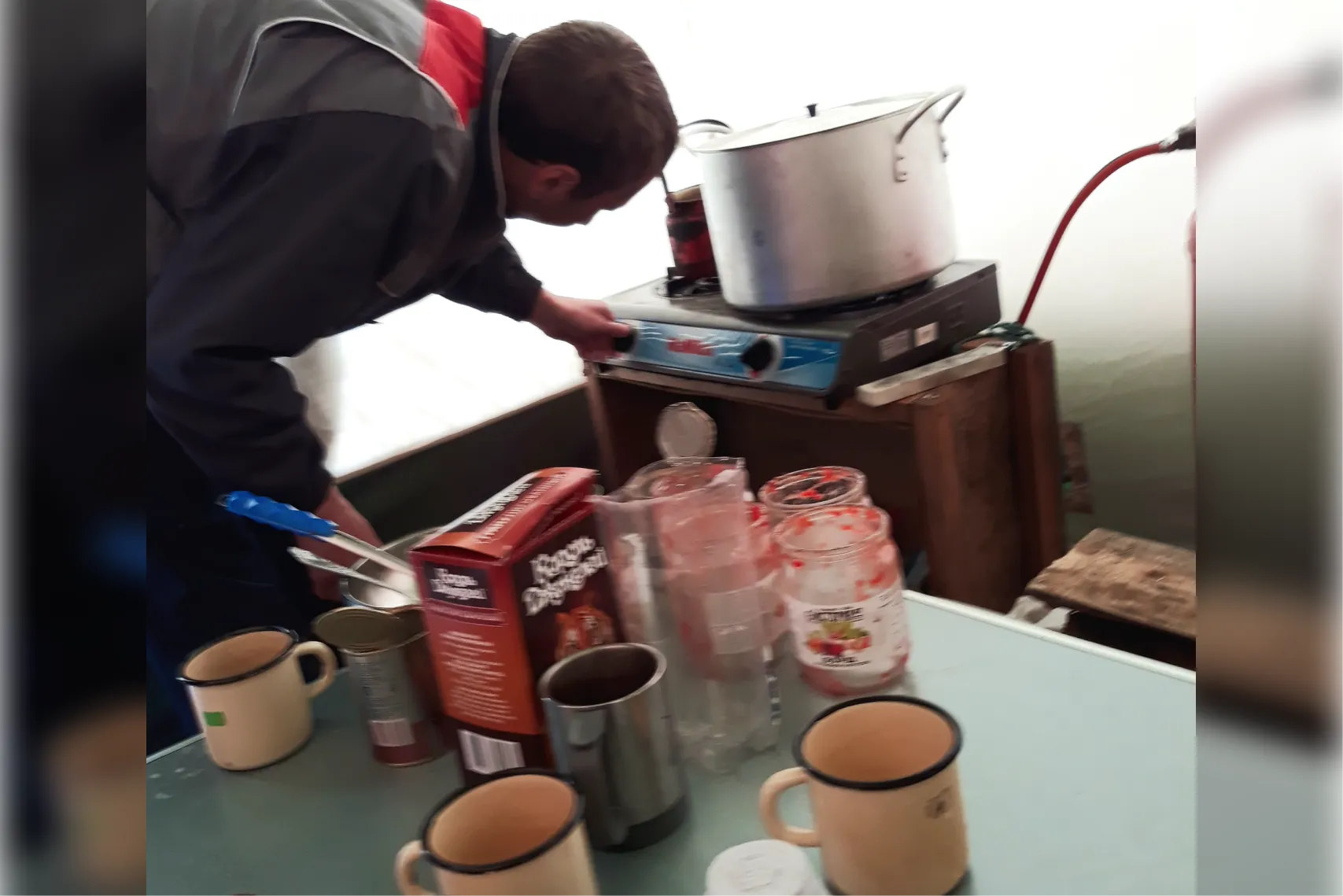 Готовят в поле сами. Поваром становился тот, кто плохо ходил по маршрутам или боялся гор — так распределяли нагрузку. Из еды был стандартный походный набор: тушёнка, крупы, макароны, супы, красная рыба и икра. Мяса не брали — максимум могли где-то добыть зайца или утку, но это случалось редко.