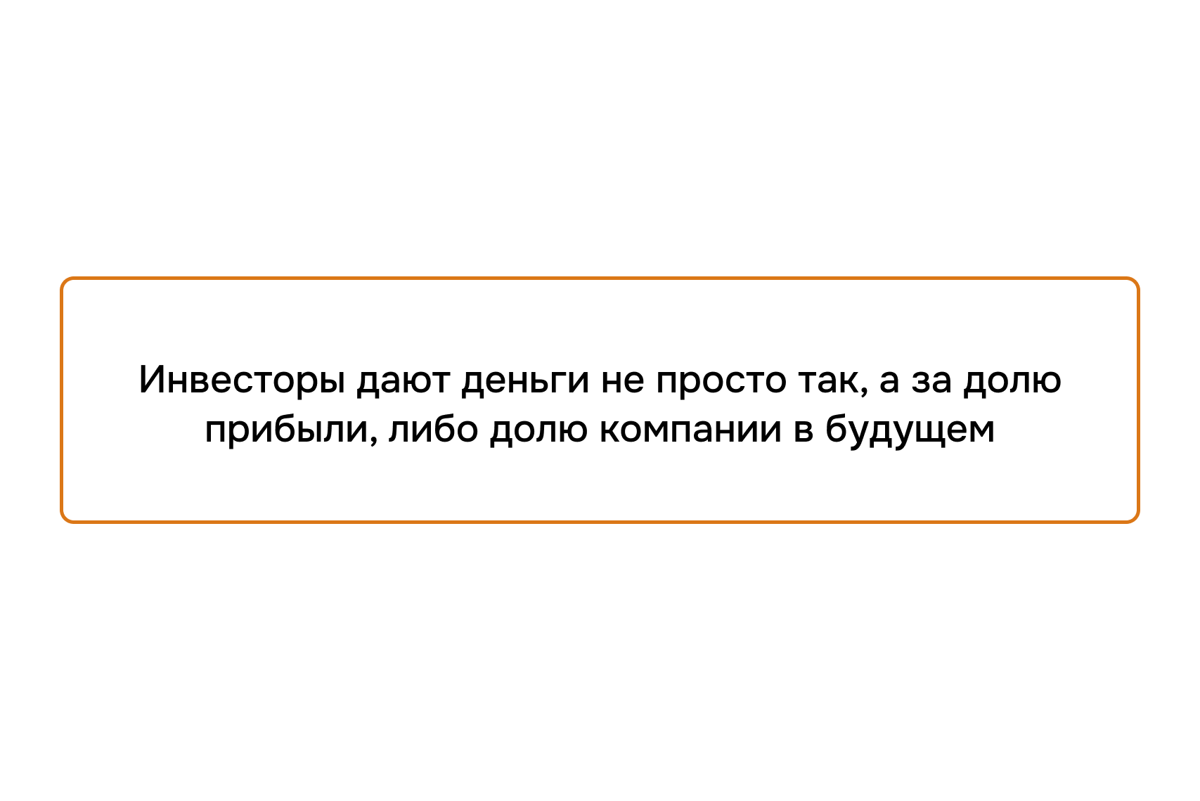 Все люди, которые дают тебе рубль, хотят получить три, а лучше четыре, пять, а в идеале десять рублей. Вопрос: что мы хотим продать — почку или душу. Душа намного дороже почки, то есть инвестор может купить 10% компании и не иметь решающего слова, зато даст тот пресловутый миллион, и этот миллион будет тебе как мертвому припарка, и твоя компания не вырастет.