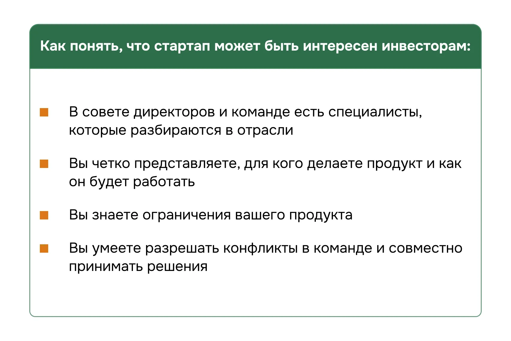 Перед тем как пойти за инвестициями, надо четко понимать, зачем они тебе нужны, и нужны ли вообще. От этого будет исходить решение, что продавать — почку или душу. Потому что если нужен только миллион, и мы откроем еще одну палатку, это одно. Может быть, игра не стоит свеч. А если я получу миллиарды, и мы откроем большой торговый центр или палатки во всех городах России, возможно, это как раз и есть та игра, которая стоит свеч.