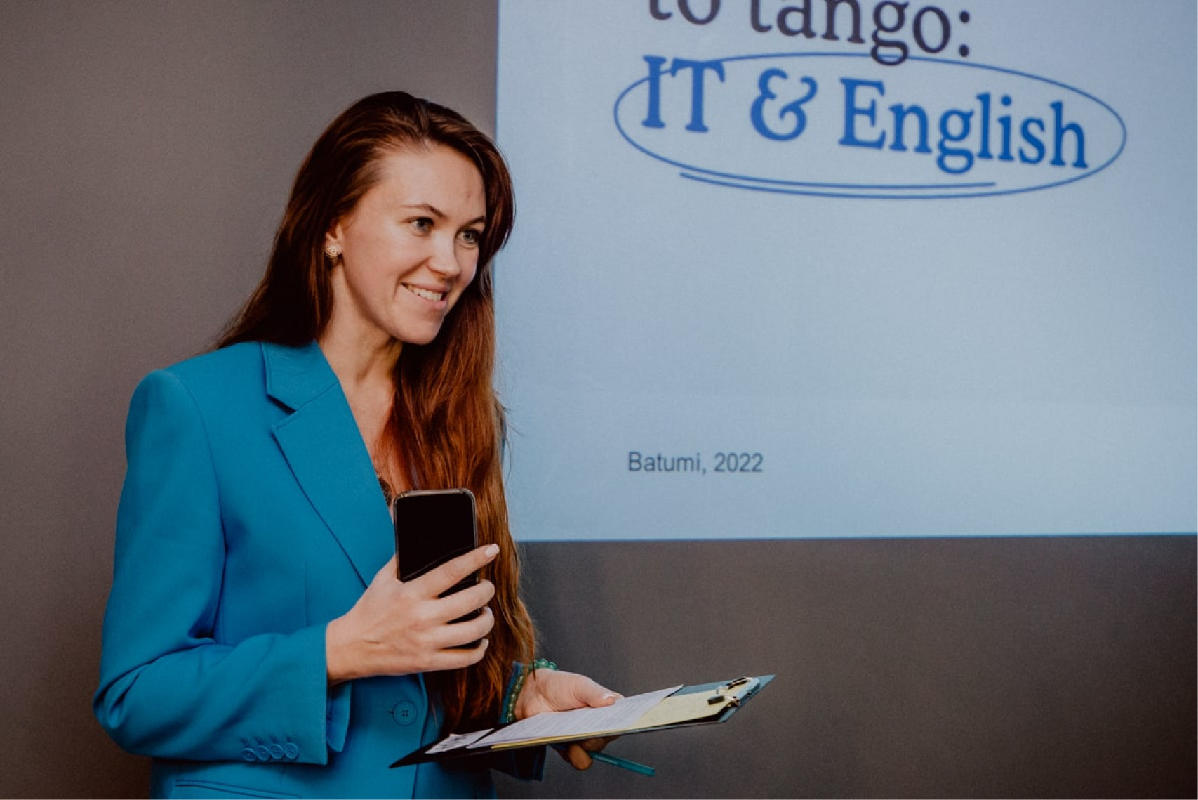 Даже преподаватели поддерживают свой уровень языка. Мы смотрим фильмы, общаемся с командой преподавателей только на английском. Так я проверяю, что они говорят без ошибок. А еще мы говорим на сочном, по-настоящему сложном английском, на каком не можем говорить со студентами.