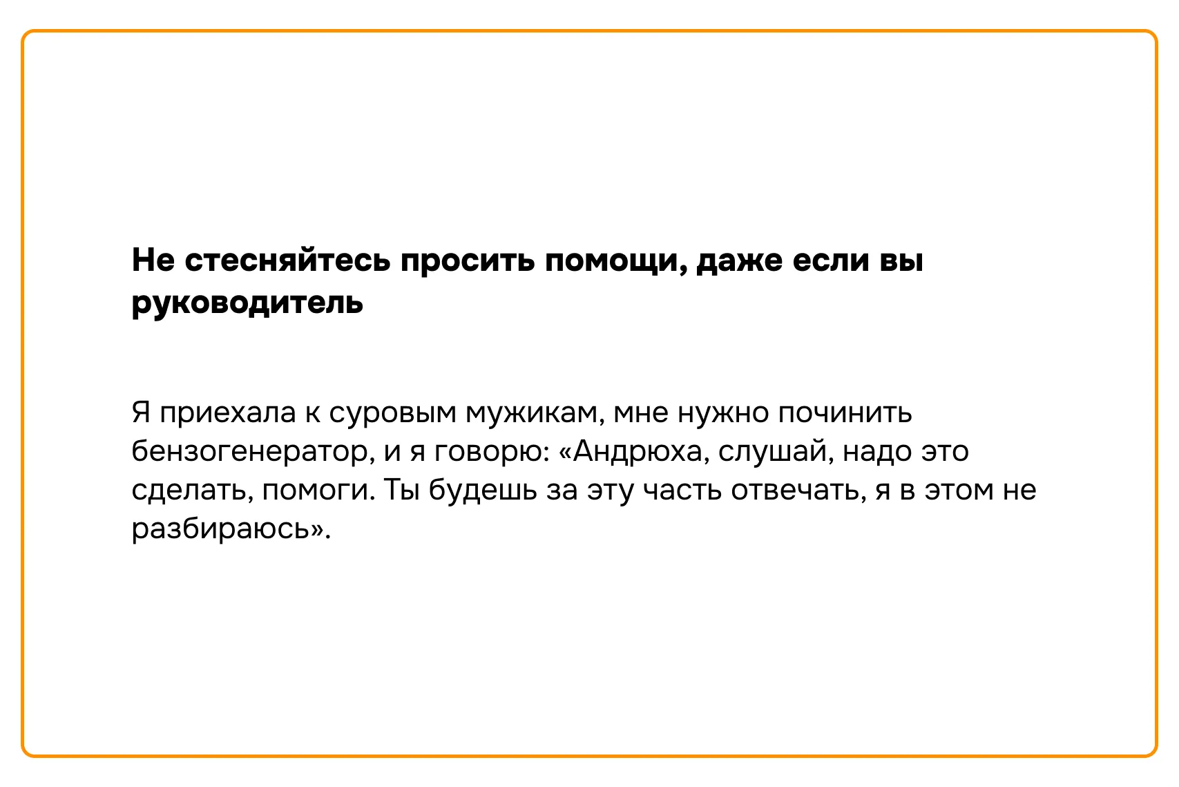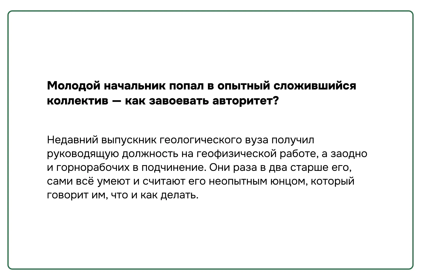 Заходить с ноги, конечно, тоже вариант, мол, я тут пришел, дайте все, что мне надо, но у вас должны быть либо веские основания на такой тон, либо очень крутая репутация — все это у молодого начальника вряд ли есть. Поэтому даже если вы руководитель, вам тоже нужна помощь от команды. Вам нужно показать важность своих же людей, с которыми вы работаете: