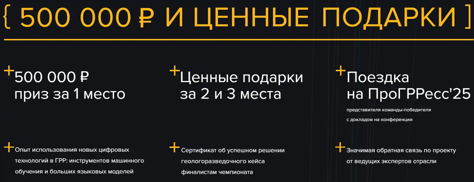 Главный приз чемпионата — 500 000 ₽ и поездка на «ПроГРРесс’25». Но даже если вы не попадете в число победителей, участие даст вам куда больше, чем просто попытку выиграть. Это будет кейс в портфолио: интерпретация данных сейсморазведки, работа с ИИ, командный проект, презентация — всё по-настоящему. Это можно показать в резюме, обсудить на собеседовании, использовать как аргумент для внедрения цифровых инструментов в своей компании. А может, это вообще будет первый шаг к смене специализации.