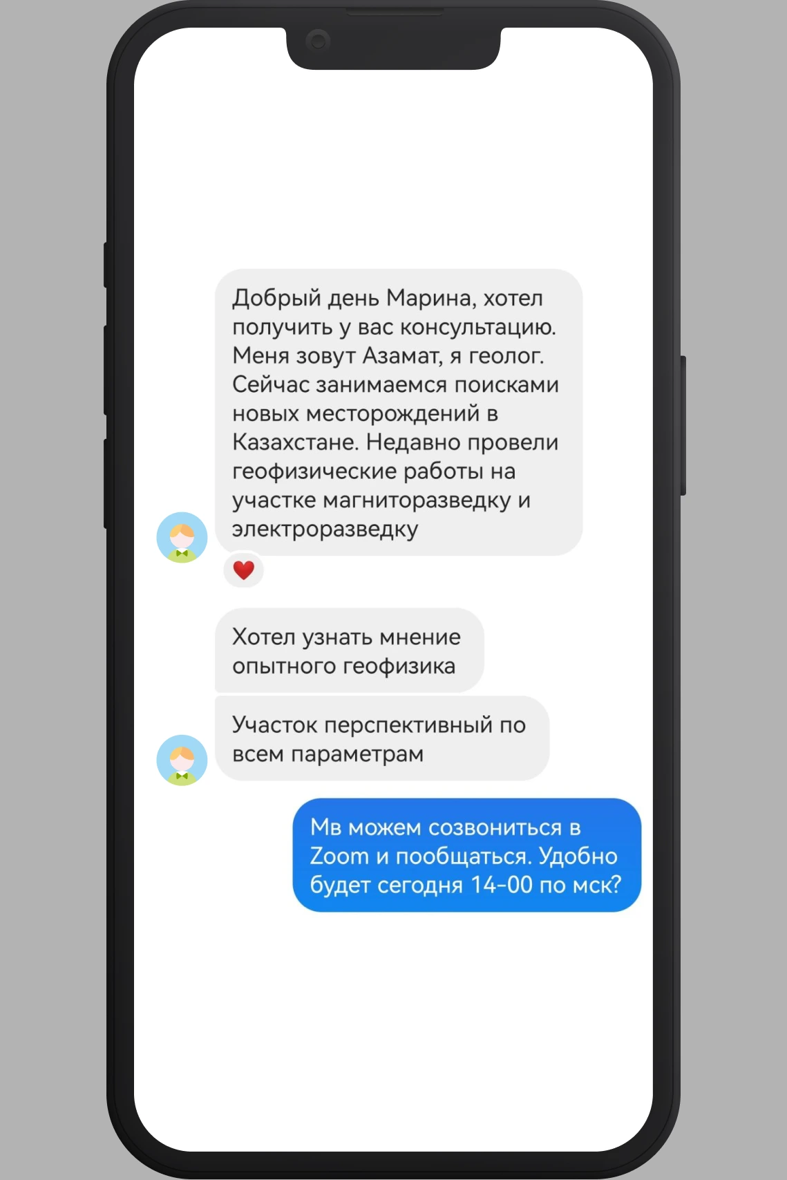 Я веду блог о геофизике, в котором рассказываю, как эффективно организовать геофизические исследования. Периодически мне приходят запросы на консультации. Так было и в тот раз, когда я получила ничем не примечательное сообщение. Меня спросили, могу ли я сделать проект на магнито- и гравиразведочные работы. Мы созвонились, и я узнала, что проект нужен именно на аэрогеофизические работы. Здесь моих знаний уже не хватало, и я организовала еще одну встречу с коллегами-аэрогеофизиками. Выяснилось, что авторы проекта и будут выполнять геофизические работы, а сумма контракта может достигать 2 миллионов долларов.