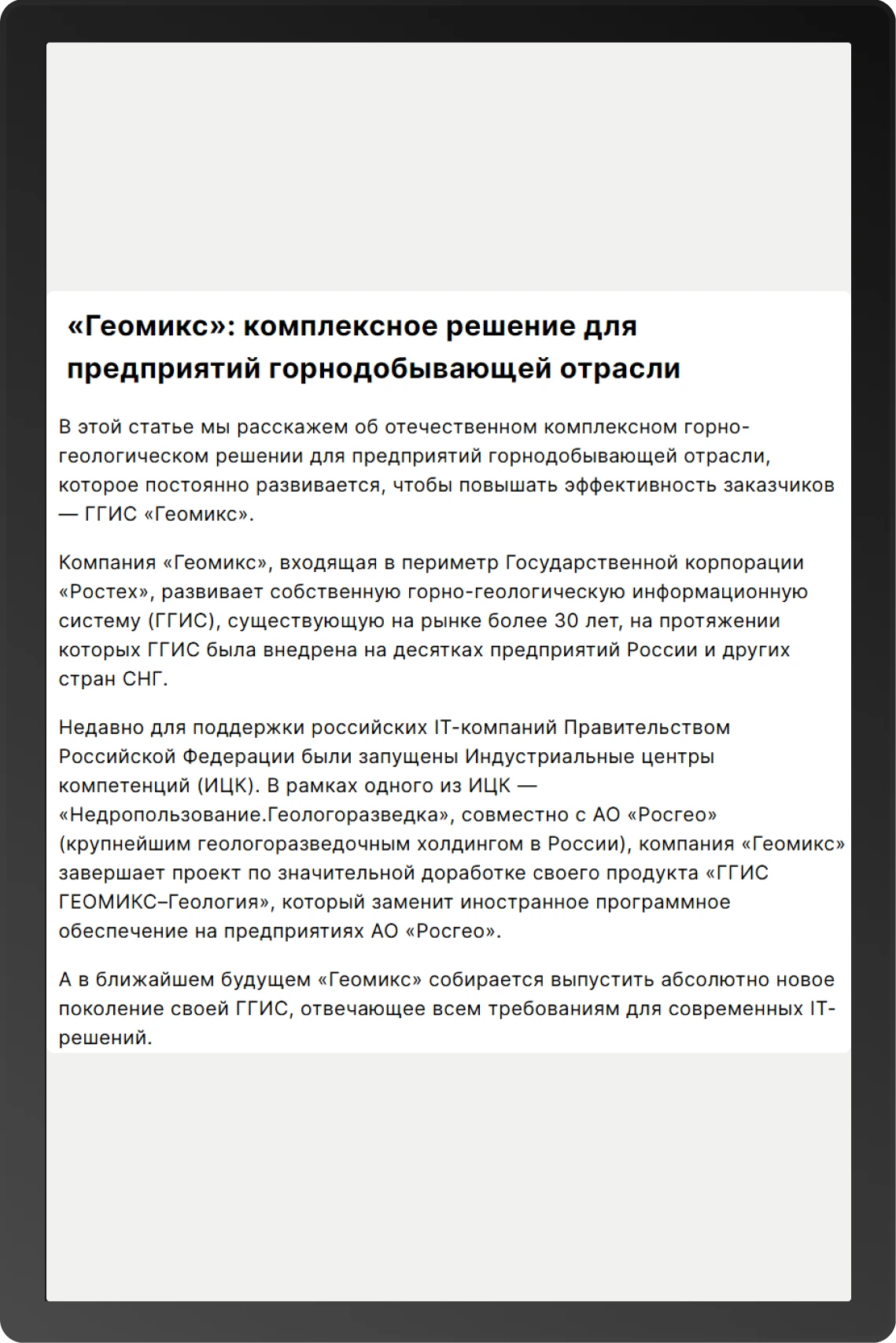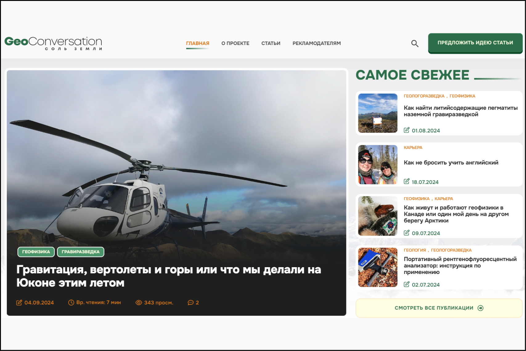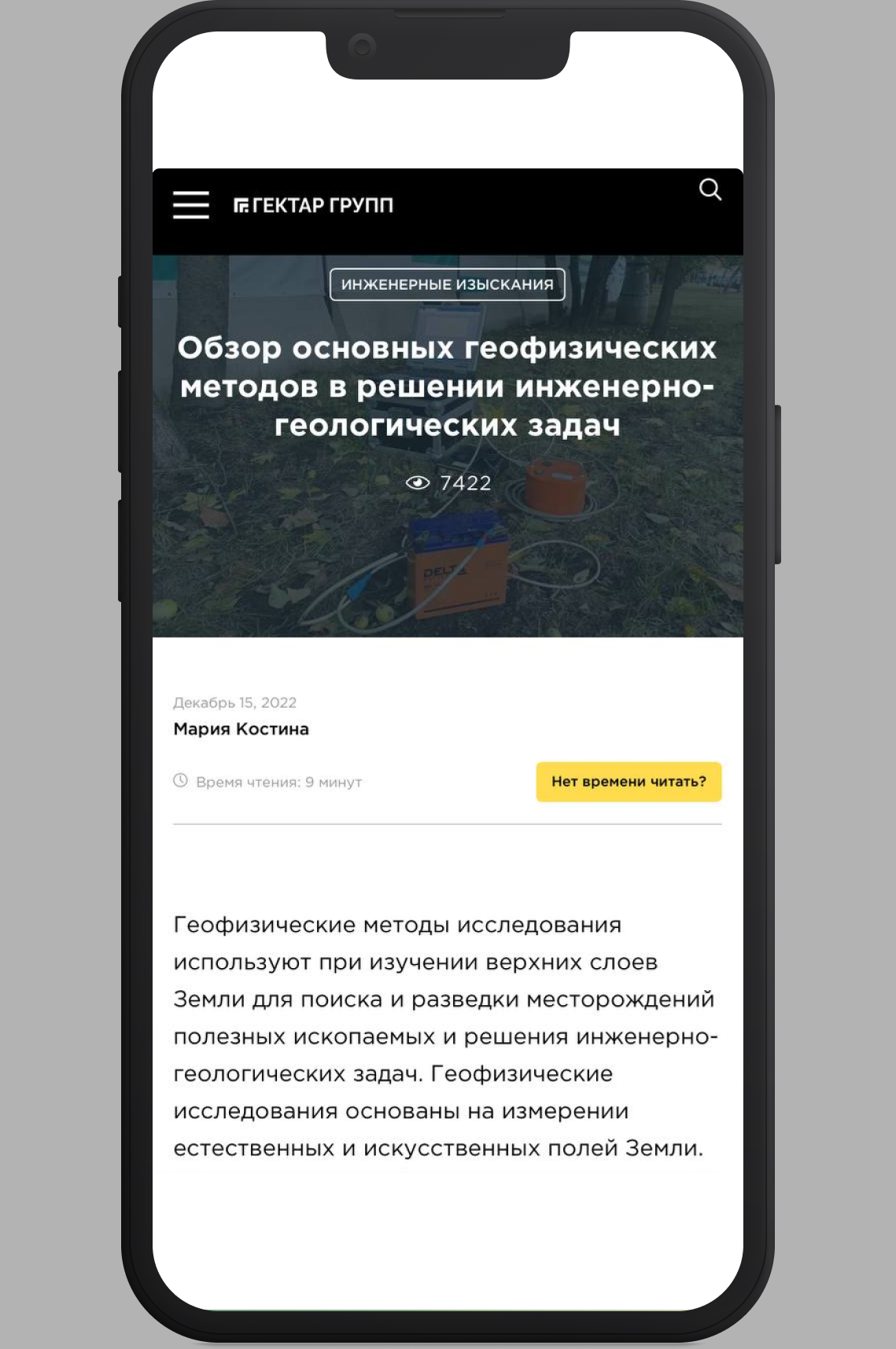 Продукты и услуги в добывающей отрасли сложны, клиентам их надо объяснять. Что это такое, как работает, какой даст результат, какие есть ограничения? Будет отлично, если клиент найдет ответы в статьях на сайте компании. Так, для изыскательской компании я готовила статьи про инженерную геофизику, поскольку эта компания хотела подсветить это направление работ и получать по нему больше заказов. Я написала статьи: