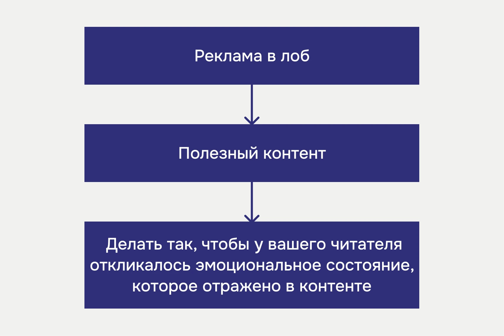 Когда-то было достаточно заявить о себе и сказать, что у нас самый лучший продукт. Сейчас же в инфошуме рекламный баннер останется незамеченным. Происходит инфляция и «how-to» контента, когда мы просто даем читателю сухую инструкцию, не рассказывая, как эти советы применять в жизни.