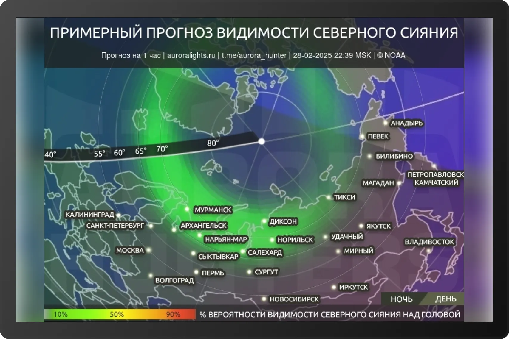 В России таким аккумулирующим центром является Росгидрометр, а также существует NOAA – Национальное управление океанических и атмосферных исследований. На его сайте размещены карты с прогнозами, начиная от штормов, бурь, ураганов, и заканчивая той самой космической погодой. В режиме реального времени можно отследить, например, в каких точках ионосферы происходит северное сияние.